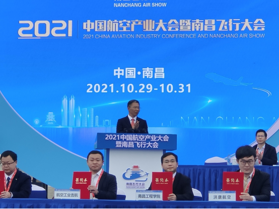 10月29日,2021中国航空产业大会暨南昌飞行大会在江西南昌瑶湖机场开幕,副校长贺丹君一行应邀参加开幕式,代表学校与航空工业吉林航空维修有限公司签署校企合作协议,共建南昌工程学院先进制造产业学院(吉航班)。教务处、机械工程学院相关人员陪同参会。