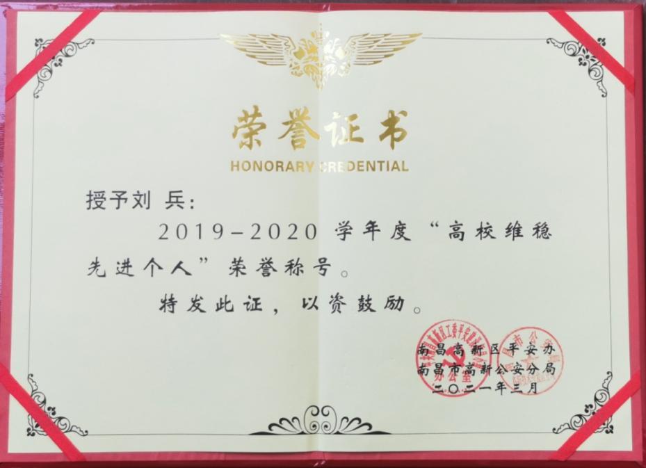近日,南昌高新区平安办、公安分局发布《关于表彰2020年度高校维稳工作先进单位和先进个人的表彰决定》,欧博被评为2019—2020年度“高校维稳协作先进单位”,保卫处刘兵同志被评为“高校维稳工作先进个人”。(文/李丁宁 图/陈玮 责任编辑 周冠佳 潘旭)
