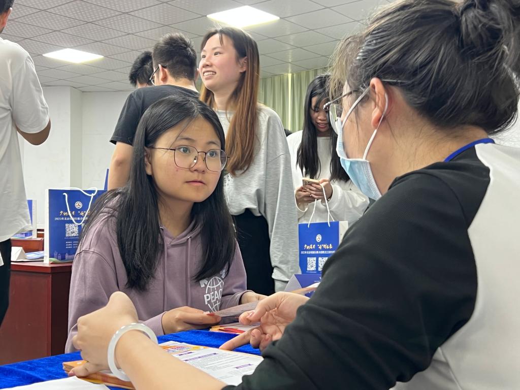 招聘现场气氛热烈,开平市相关部门及企业代表分别向求职学生介绍引才政策、公司信息及招聘要求,积极与学生进行互动交流;毕业生认真了解企业招聘信息、积极投递简历,现场有百余名毕业生与用人单位达成初步就业意愿。