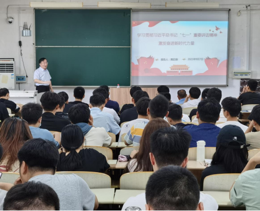 在北教学楼C105教室,吴泽俊为所联系机械工程学院和经济贸易学院作专题宣讲。报告从习近平总书记“七一”重要讲话的历史背景、主要特点及重大意义入手,指出习近平总书记“七一”重要讲话适逢特殊的时间节点、特殊的历史方位、特殊的内外环境、特殊的使命任务背景,具有重大的历史意义。吴泽俊分享了学习心得体会,着重为师生们宣讲了中国共产党百年来伟大成就和成功经验,阐述了伟大建党精神的深刻内涵以及党如何延续成功密码等内容。他强调,全体师生要把学习贯彻习近平总书记“七一”重要讲话精神作为当前和今后一个时期一项重大政治任务,切实在学懂、弄通、做实上下功夫;全体教师要牢记“立德树人”根本任务,潜心育人、刻苦钻研,提升使命担当,“为党育人,为国育才”;全体青年学生要牢记“请党放心,强国有我”的铮铮誓言,以青春投身服务人民的实践大熔炉中,磨炼自我,锻造成才,用实际行动兑现承诺。