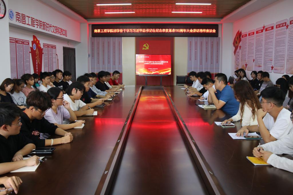10月9日中午,青年学子学习习近平总书记在纪念辛亥革命110周年大会上的重要讲话精神座谈会在大学生活动中心A204举行,校大学生骨干培训班学员、校院两级主要团学骨干、团员青年代表等50余人参加座谈。大家表示,要听党话、感党恩、跟党走,传承红色基因,继承先烈遗志,坚定不移走好中国特色社会主义道路,为实现中华民族伟大复兴奋勇前行。