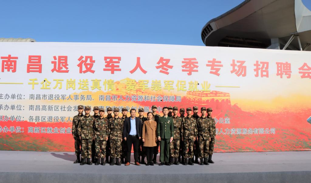 11月30日,南昌市退役军人事务局、南昌高新区社发局等单位联合举办的“2021年南昌市退役军人冬季专场招聘会”在奥体中心启动,人民武装部组织退役大学生和2021级定向培养士官生参加启动仪式。