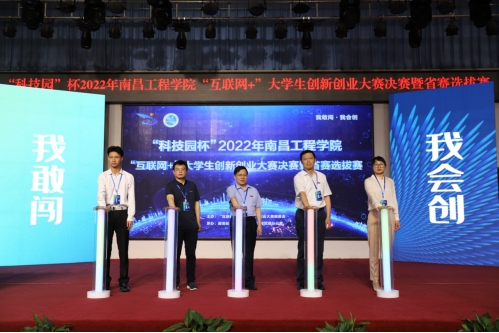 校领导和评委、指导老师、参赛学生代表共同启动比赛