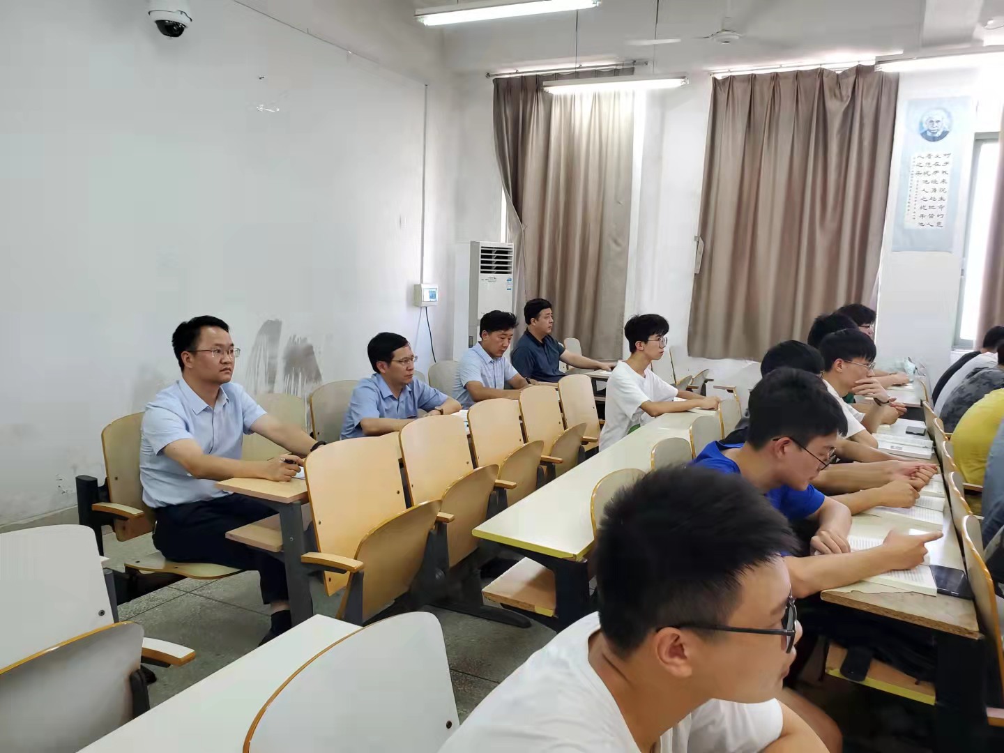 近日,校长汪胜前深入思政课堂随堂听取了马克思主义学院卞桂平老师的《马克思主义基本原理概论》课程,教务处、土木与建筑工程学院负责人一同听课。