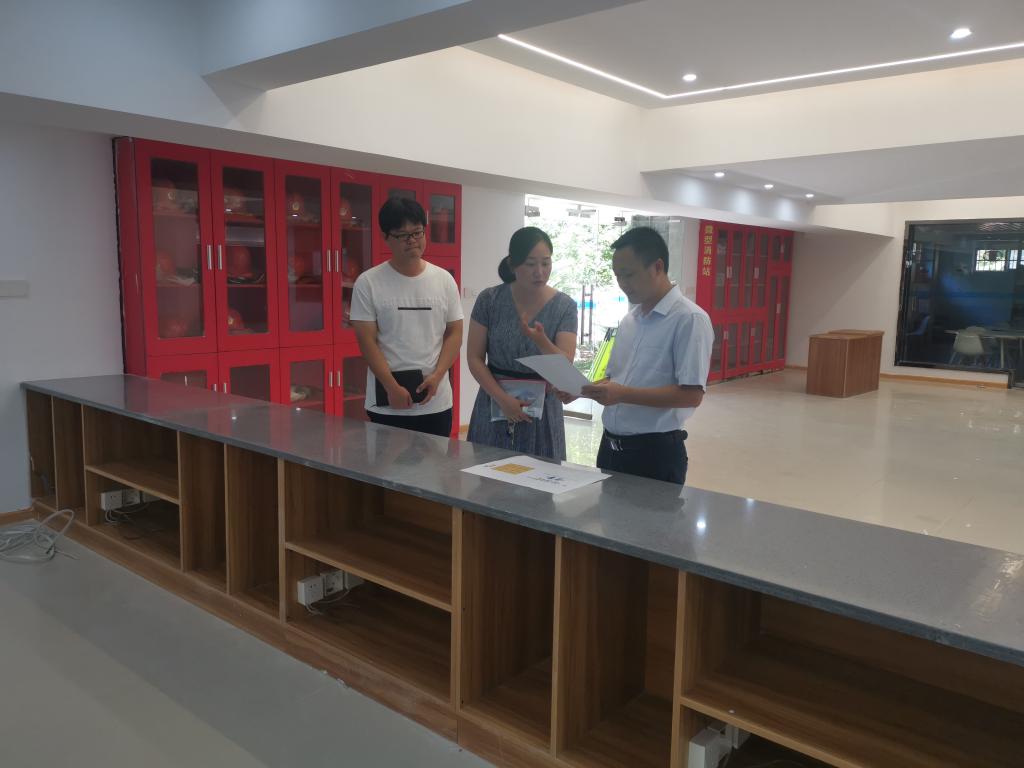 7月23日上午,副校长周敏丹实地察看“一站式”学生社区服务大厅建设进展情况,学工处副处长何有兴和学生社区管理办公室负责人陪同。