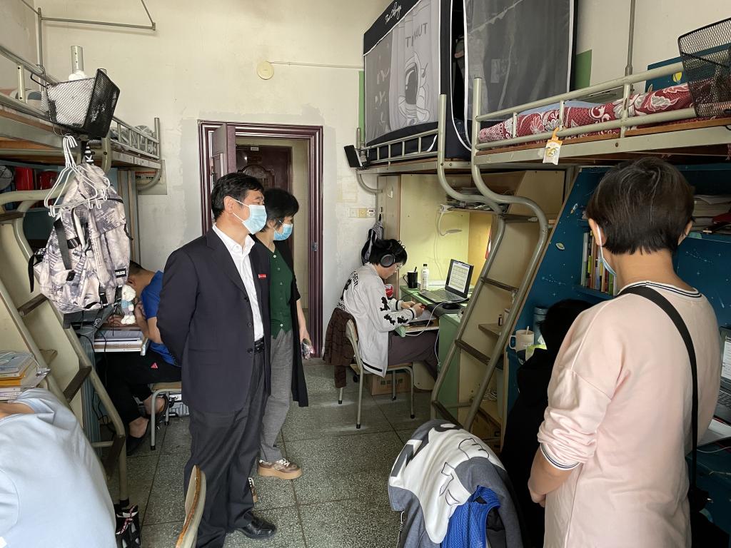 4月6日上午,校党委副书记吴泽俊来到学生社区第1、12栋,了解学生线上学习、生活状况和思想动态,帮助解决遇到的困难。