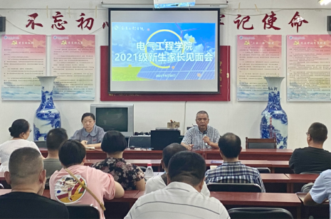 在机电楼A406会议室,电气工程学院党委书记高週全介绍了学校和电气工程学院发展史及发展愿景,鼓励新生确定奋斗方向,重视制度与约束。学院学生工作负责人介绍了新生入学安排及安全事项,老师们就家长关心的问题作了详细解答。