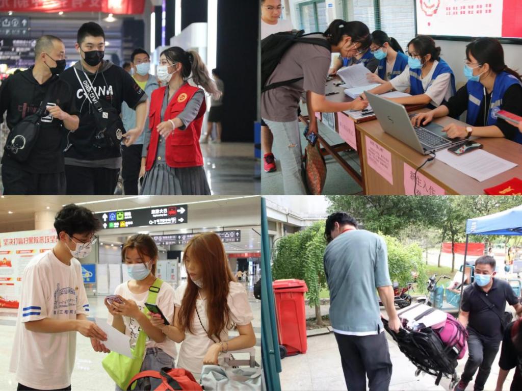 站好第一班岗,做新生的迎接者。根据迎新工作安排,在全校范围内招募志愿者并制定志愿者工作手册和进行系统培训,在南昌站、南昌西站、校内各主干道、学生楼栋等安排志愿者对接新生咨询、疫情防控、行李搬运等工作,全心全意迎接和服务新生到来。
