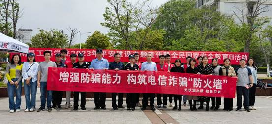 活动中,光伏派出所民警、保卫处工作人员、机械工程学院志愿者通过悬挂横幅、发放宣传单、摆放展板等形式,向师生宣传《江西省平安建设条例》《反电信网络诈骗法》和国家安全、反恐防暴、禁毒、交通安全等方面知识,重点介绍了校园常见的虚假平台投资、网络刷单、网络购物、冒充领导熟人等诈骗案件套路及涉“两卡”犯罪问题,提醒师生守护好“钱袋子”,切实增强自我防范意识,提高识骗防骗能力。