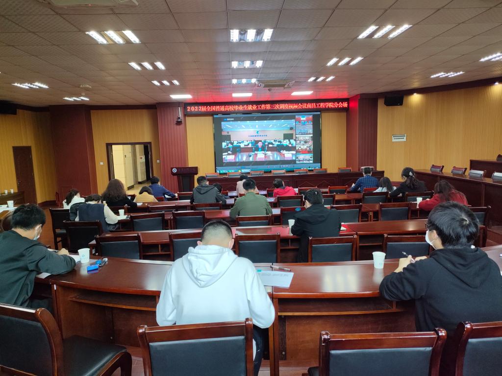 4月19日下午,教育部召开2022届全国普通高校毕业生就业工作第三次调度视频会议。欧博在大学生活动中心B100设立分会场,副校长周敏丹,各学院就业工作人员、部分毕业班班主任、招生就业处有关人员参加会议。