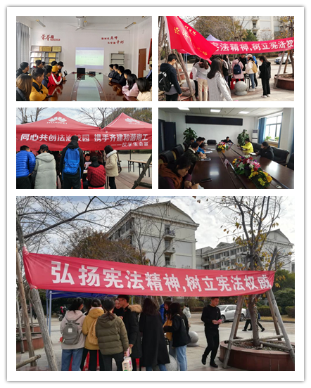 校团委、学生会和经济贸易学院分别在一食堂前开展“国家宪法日”主题宣传教育活动。通过发放宪法知识宣传单、设置宪法知识趣味游戏、开展宪法知识有奖竞答、举行宪法宣言签名等系列活动,在全校营造学习宪法、尊重宪法、维护宪法的浓厚氛围。