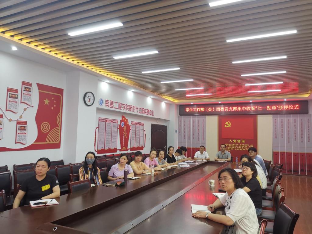 6月29日上午,学生工作部(处)团委党支部在支部党员活动室开展党史学习教育暨主题党日活动,全体党员集中收听收看“七一勋章”颁授仪式。与会人员表示,要深入学习习近平总书记在“七一勋章”颁授仪式上的重要讲话精神,以29名“七一勋章”获得者为榜样,坚定理想信念,加强自身建设,积极履职尽责,不断提高政治判断力、政治领悟力、政治执行力,在实现中华民族伟大复兴中国梦的新征程中作出更大贡献。