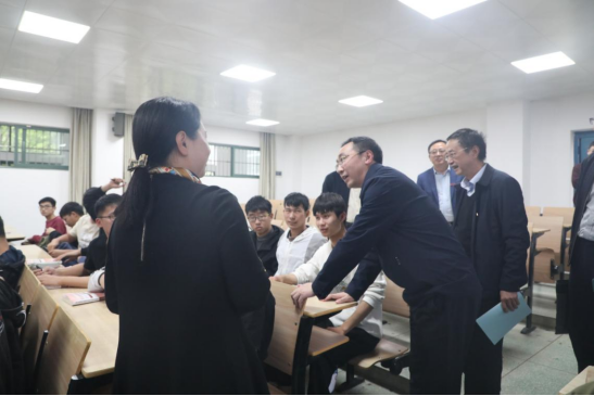 在思政课课堂,叶仁荪听取了青年教师陈红的《毛泽东思想与中国特色社会主义理论体系概论》课程,并在课后与授课老师和同学们亲切交流,询问学生的听课感受,勉励同学们要认真学好思政课,从中深刻理解历史和人民为什么最终选择马克思主义、选择中国共产党、选择社会主义道路,以实际行动为中华民族伟大复兴的中国梦贡献力量。