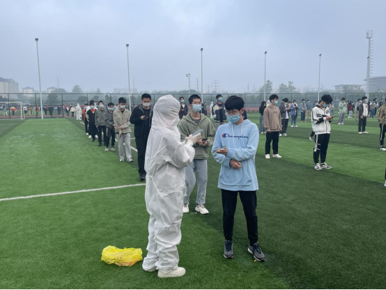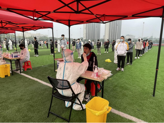 各部门、各学院积极响应、密切配合,同心、同向、同步、同力,筑起疫情防控的坚实防线。全校学生火速集结、积极配合,住校教职工、家属严格遵守规定,佩戴口罩,保持距离,分批次、分时段依次排队进入采样区。第八轮核酸检测流程规范,秩序井然,快速高效。(文/吴京颖 图/吴京颖 学生记者 王诗月 叶城 徐娜 桑筱鹏 高亦玮 责任编辑 周冠佳 潘旭 学生记者 黄真霓)