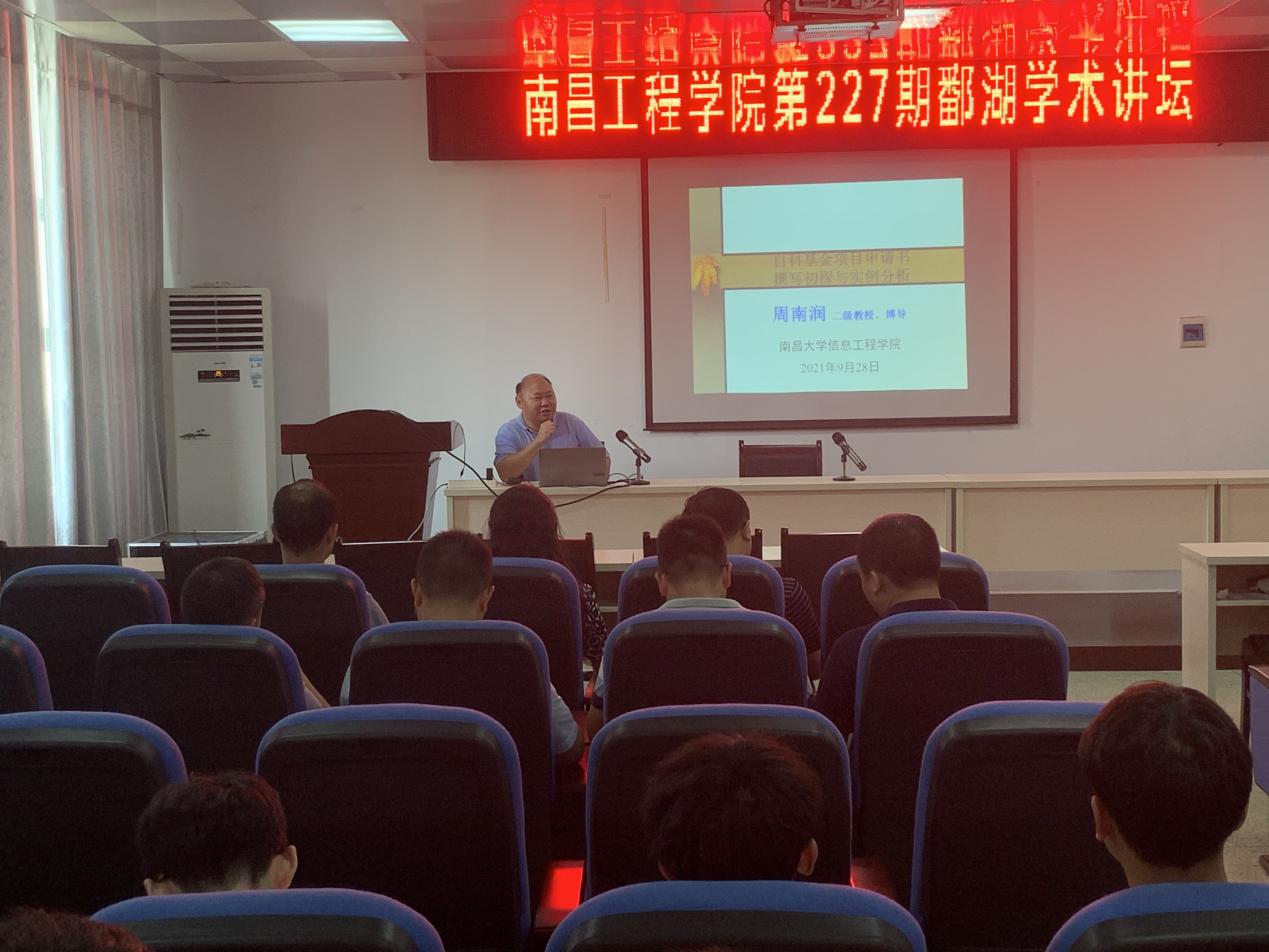 9月28日,南昌大学周南润教授作客欧博第227期“鄱湖学术讲坛”,在电气工程学院A304会议室作题为“国家自然科学项目申请书撰写初探与实例分析”的学术报告并与教师交流。