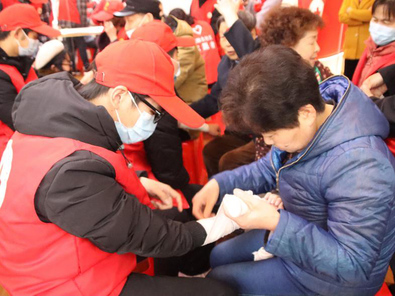 国际教育学院“民主队”的青年志愿者照看社区孤寡老人