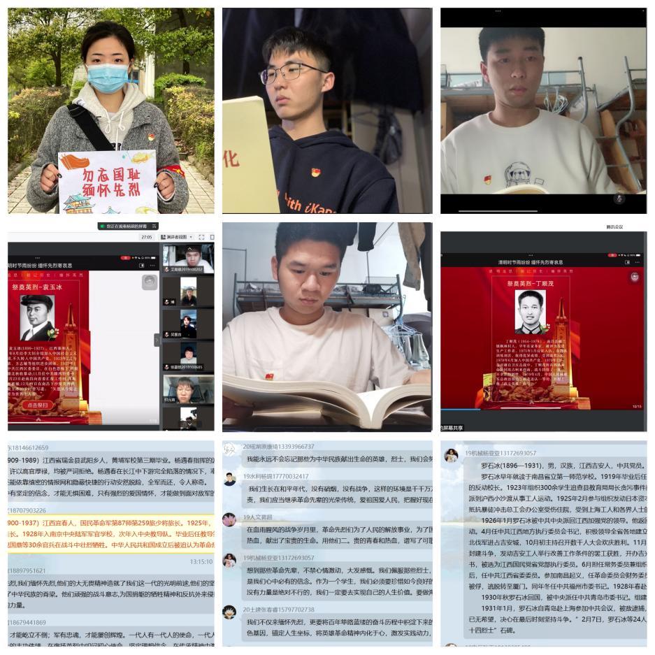 各学院学生党支部开展了“线上云走读”“网上祭先烈”“书信托哀思”“学事迹诵家书”等系列活动。同学们通过参加中华英烈网线上祭扫活动、网上献花、撰写“穿越时空的对话——写给革命先烈的一封信”等形式,重温英烈事迹,弘扬先烈精神。