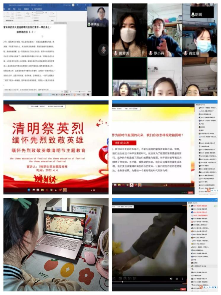 学生公寓党的工作支部以“屏对屏、键对键”形式开展“云上微讲堂”,通过视频会议的形式开展诵读红色家书、观看红色影片、重温党史等活动,访问中华英烈网学习英雄人物功勋事迹,在祭扫中寄托无限崇敬,在缅怀中重温壮烈情怀,在学习中赓续精神血脉,教育引导广大学生自觉做弘扬爱国主义的时代先锋,把先烈的精神内化于心、外化于行,立志为民族复兴建功立业。