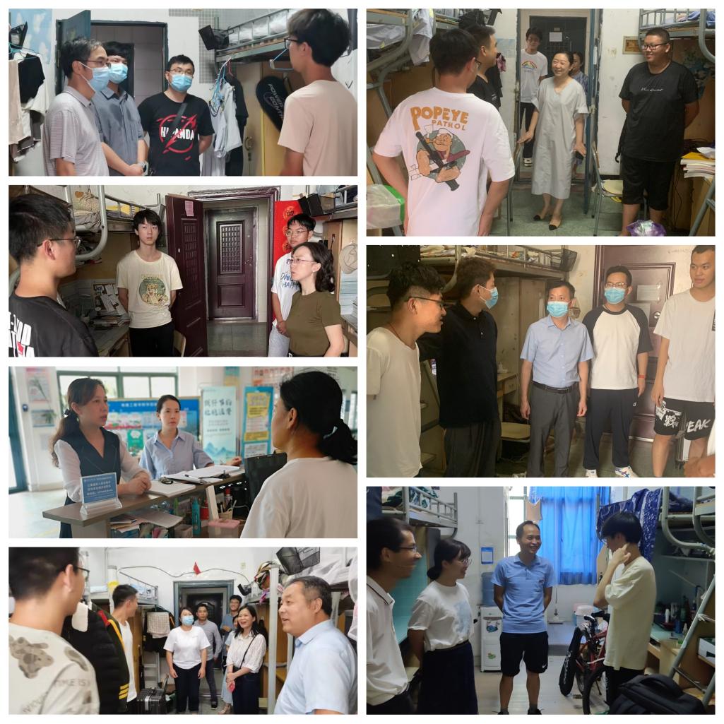 返校现场设置了学院通道门检,严格实施“一核二测三查”制度。师生党员志愿者及安保人员细心引导,仔细核对身份信息,测量入校体温,查验学生健康码、行程码、核酸检测报告等材料,各项工作井然有序,切实把好“校门关”,筑牢校园安全防线。综合服务台和校医院服务点为学生提供返校咨询、防疫物资发放、行李托管和防疫消杀等便民服务;免费核酸检测点、校园运输大巴车、欢迎展板、寄语条幅等服务和细节传递着无微不至的关心关怀。学生社区已对学生公寓各区域和各类设备进行了严格的消杀和全面排查维护,以干净整洁的宿舍环境、认真细致的生活管理、贴心热心的服务保障营造和谐有爱的校园氛围。各学院领导班子成员、辅导员、班主任也来到返校现场和寝室走访慰问,鼓励大家做好新学期规划、明确奋斗目标。