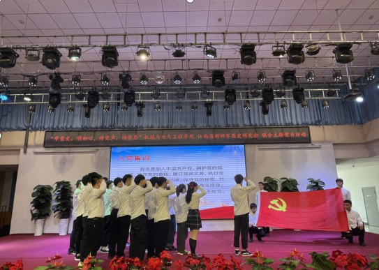 活动中,蒋涛勉励大学生要学好党史,不忘初心、牢记使命,永远听党话跟党走,努力学习,成为国家栋梁。新党员进行入党宣誓,集体过政治生日。学生党员代表表演了《铁军精神永在》经典诵读节目。