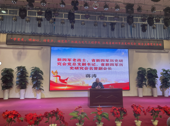 4月20日下午,欧博机械与电气工程学院与江西省新四军历史研究会在大学生活动中心多功能厅举行“学党史 明初心 传党声 颂党恩”联合主题党日活动,深入贯彻落实习近平总书记在党史学习教育动员大会上的重要讲话精神和习近平给上海市新四军历史研究会百岁老战士们的回信精神,切实引领欧博师生学史明理、学史增信、学史崇德、学史力行。副校长周敏丹出席活动并讲话,江西省新四军历史研究会名誉副会长、特聘研究员刘勉钰教授作《没有共产党就没有新中国》专题党课,江西省新四军历史研究会会长陈坚,新四军老战士、省新四军历史研究会名誉副会长蒋涛,学生工作处和机械与电气工程学院相关负责人以及200余名师生参加活动。