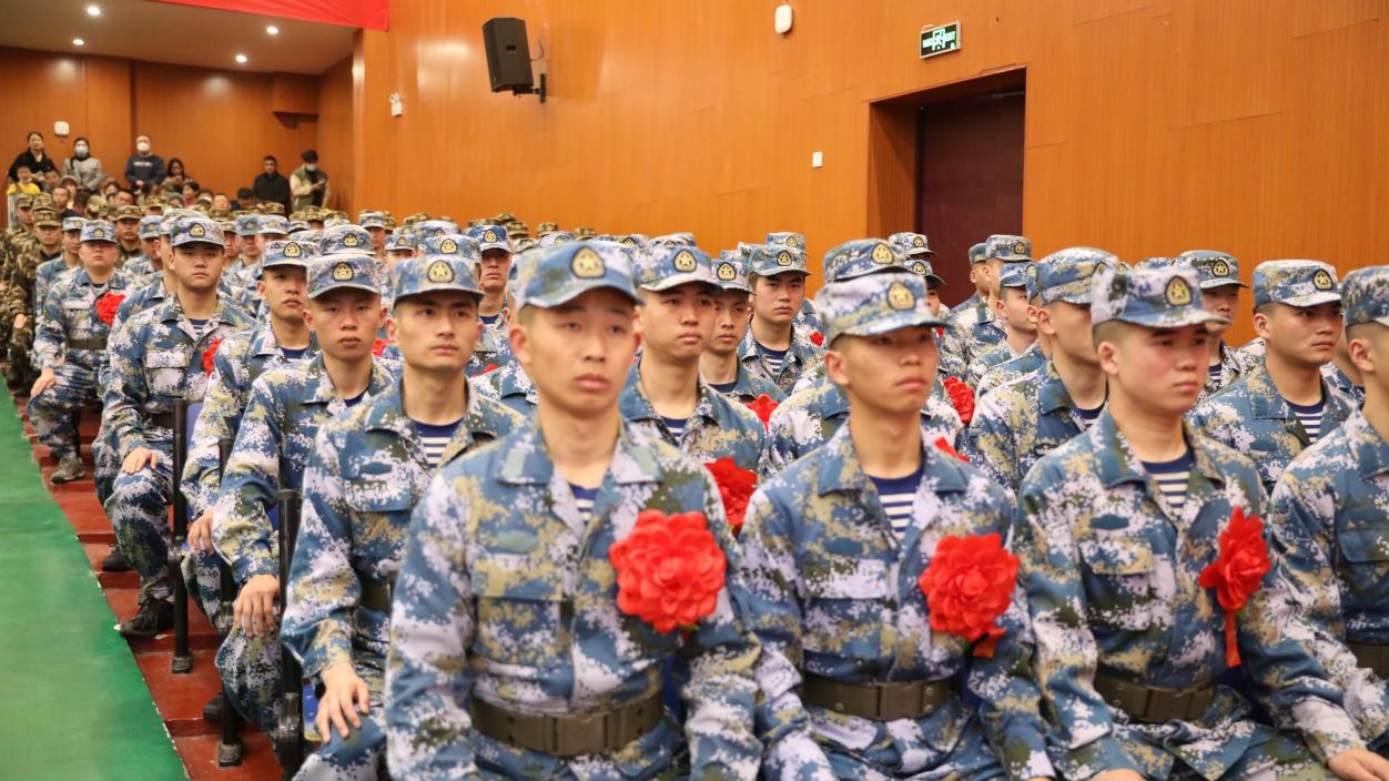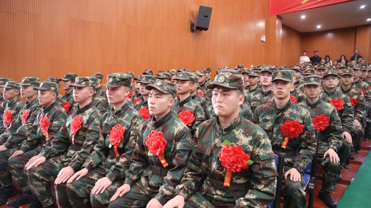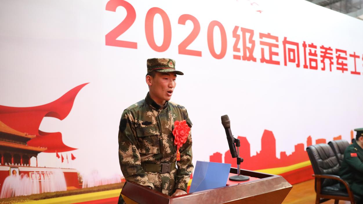 胡晓勇宣读军士生入伍名单,教师代表、家长代表、入伍军士生代表依次发言。军歌嘹亮,强军有我,军士生齐唱强军战歌,表达自己参军入伍、矢志报国的决心。