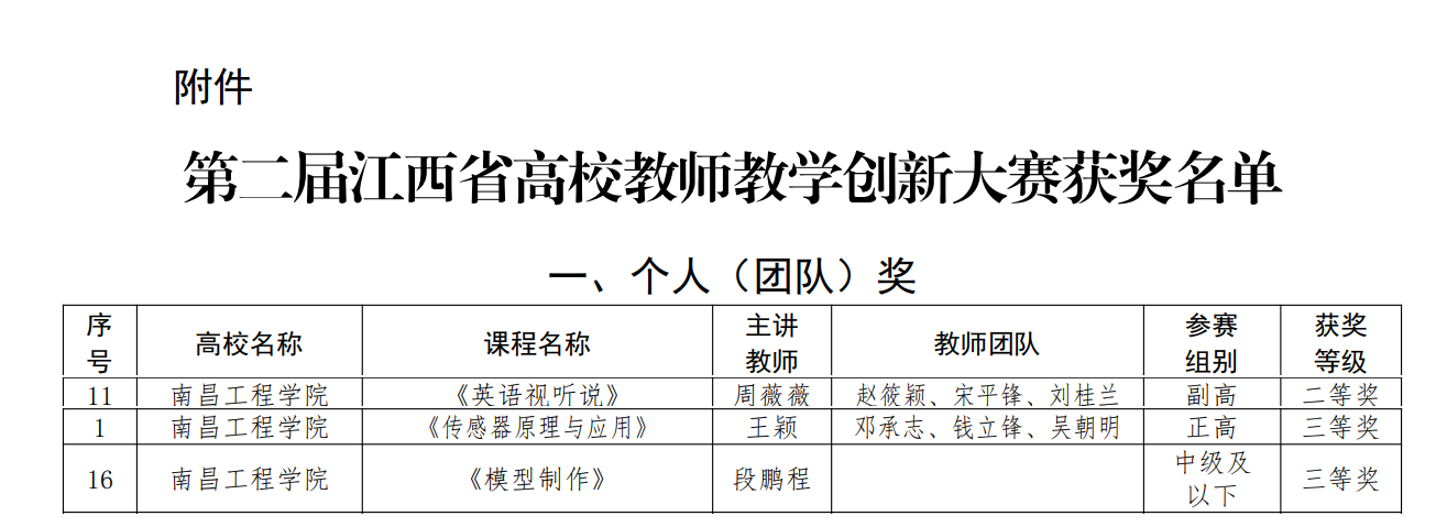 近日,第二届江西省高校教师教学创新大赛决赛通过线上举行,欧博3位参赛教师均取得优异成绩。其中,外国语学院周薇薇主讲的《英语视听说》获得副高组二等奖,信息工程学院王颖主讲的《传感器原理与应用》获得正高组三等奖,人文与艺术学院段鹏程主讲的《模型制作》获得中级及以下组三等奖。学校获得优秀组织奖。