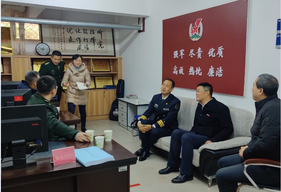 1月7日,南昌警备区动员处处长张成波、青山湖区武装部部长万志军、高新区武装部副部长李顺华一行来欧博检查指导武装部规范化建设工作。副校长陆伟锋、人民武装部负责人参加活动。