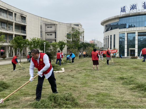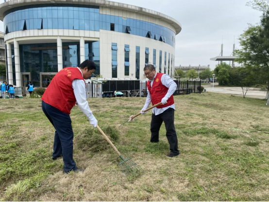 4月20日下午,后勤保障处党支部组织全体党员及学生志愿者开展“争先进、创示范、学党史、办实事”志愿服务活动,通过两个小时的劳动,对艺术楼周边的杂草、垃圾进行集中清理。副校长陆伟锋参加活动。