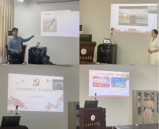 备课会上,欧博贺超海、刘静,江西服装学院徐华磊,江西工业职业技术学院黄艺雅4位荣获2021年江西省高校思政课青年教师教学基本功比赛一等奖的老师进行了课程示范教学。(文图 蒋尔蘋 责任编辑 周冠佳 潘旭)