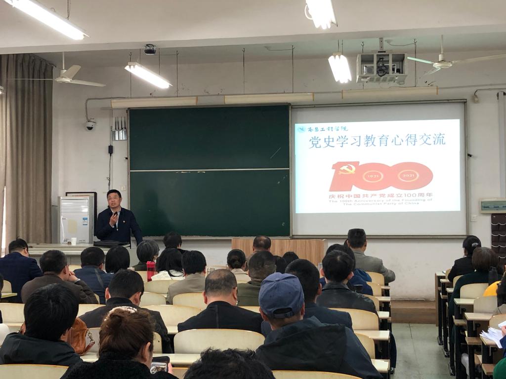 4月6日下午,副校长陆伟锋在教学北大楼B413教室为经济贸易学院全体教职工作党史专题宣讲。