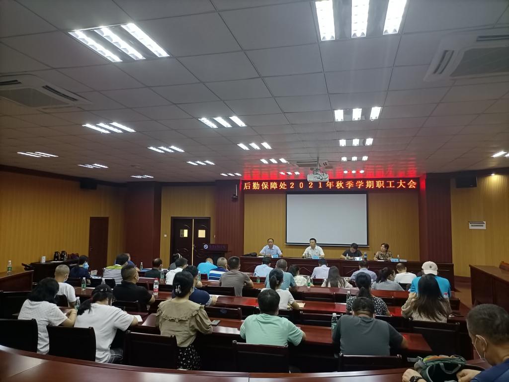 9月3日下午,后勤保障处在大学生活动中心B100召开全体职工大会,副校长陆伟锋出席会议并讲话,后勤处全体员工参加会议。