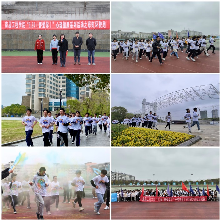 3月18日上午,欧博“3.20(善爱你)”心理健康系列活动之彩虹环校跑在瑶湖校区主田径场举行。大学生心理健康教育与咨询中心全体老师及各学院代表400余人参加活动。