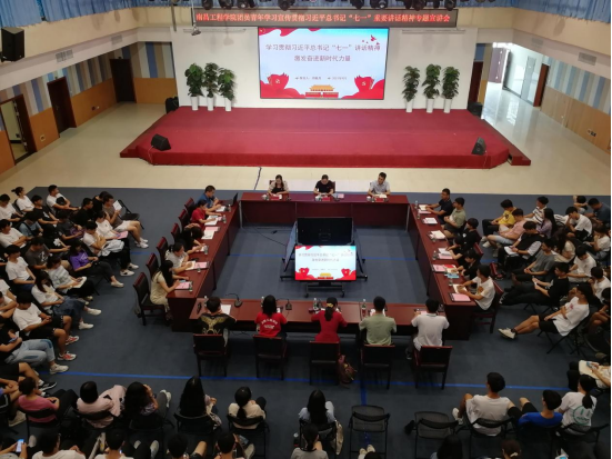 9月7日下午,副校长周敏丹分别为外国语学院所联系班级学生、团委和学生工作处师生作习近平总书记“七一”重要讲话精神专题宣讲,相关院部负责人、各学院团委师生代表共400余人聆听宣讲报告。