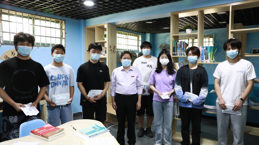 5月5日,校党委副书记、校长汪胜前来到学生宿舍8栋和北门执勤点看望慰问学生和志愿者,检查指导“三级包保”“五级联包”工作,为同学们送去口罩等物资。