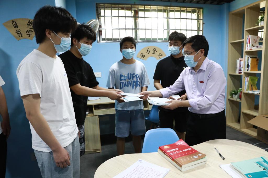汪胜前对同学们在疫情防控期间积极支持配合学校各项措施和呈现出的良好精神风貌表示肯定。他与同学们亲切交谈,详细询问了疫情防控期间学习、生活状况和毕业论文、就业状况等,嘱咐大家要早立志,铆定目标为之奋斗,做好学业和职业生涯规划;要多动手,加强实践动手能力技能养成,勤于思考、涵养自身、提升自我;要锻炼身体,在寝室勤通风、多运动,保持宿舍卫生,注意自我调节。在学校北门,汪胜前查看执勤点工作情况,慰问志愿者的值班、学习和生活情况,嘱咐他们加强防护,对同学们把小我融入大我,立志将青春献给祖国的思想认识表示赞誉。