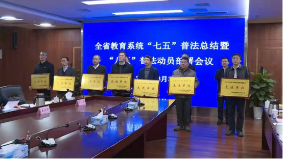 3月3日下午,全省教育系统“七五”普法总结暨“八五”普法动员部署会议召开,回顾全省教育系统“七五”普法工作成绩,表彰先进集体和个人,部署“八五”普法重点任务。省委教育工委副书记、省教育厅厅长郭杰忠出席会议并讲话。欧博在行政楼336会议室设立视频会议分会场,副校长贺丹君出席会议。校党委委员、党委宣传部部长洪恩强代表学校在主会场参加会议并接受“2016-2020年全省普法工作先进单位”荣誉表彰。