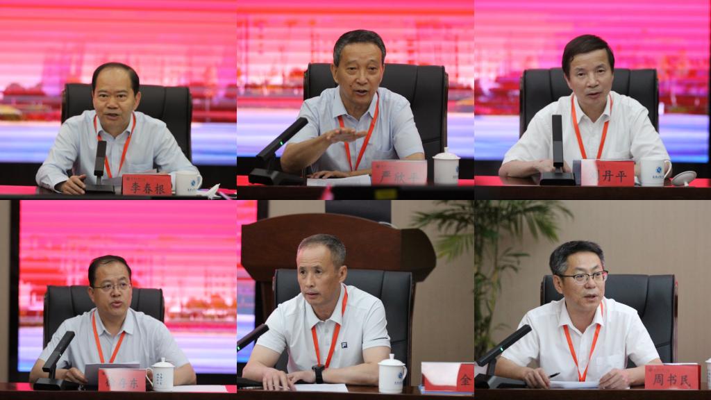 严余松主持会议并代表专家组介绍了学校线上评估和入校评估的整体情况。自4月25日学校审核评估工作启动以来,19位线上专家通过访谈座谈、线上听课、调阅资料和审阅“1+3+3”报告等方式深入考察。在线上评估的基础上,专家组7位成员于5月29日至31日开展了入校评估。