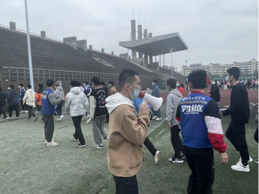 3月24日清晨6点40分,同学们有序排队等待核酸检测。“隔开一米,有序迅速进场”“戴好口罩,跟上跟上。”李赫之拿着喇叭指挥同学们有序进场。这次的核酸检测速度明显比之前提高了,1700名同学只用了40多分钟就全部完成了。“在疫情防控中不落一人,始终为他们服务,这不仅仅是学院对我工作的要求,也是父母平时对我的教导。”李赫之说。