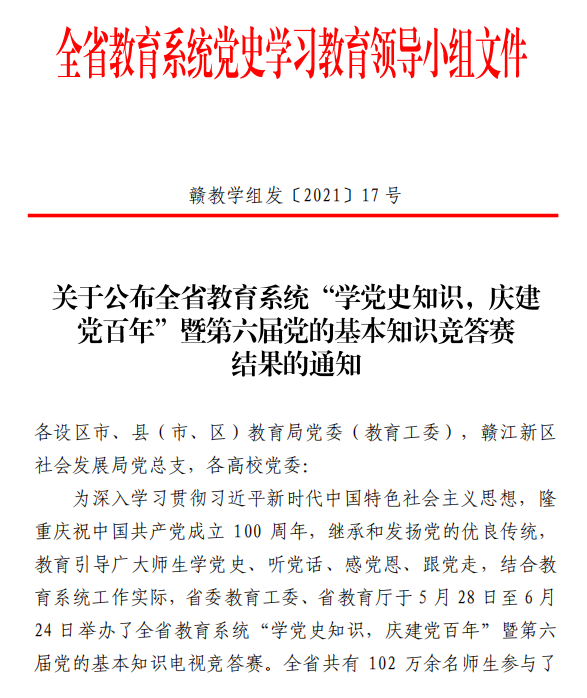 近日,省委教育工委、省教育厅公布了全省教育系统“学党史知识,庆建党百年”暨第六届党的基本知识电视竞答赛结果,欧博荣获“优秀组织奖”。活动期间,欧博共有1万余名师生积极参与每日线上答题,做到全体教师党员、学生党员和入党积极分子参与全覆盖,掀起了网上学习和答题热潮。