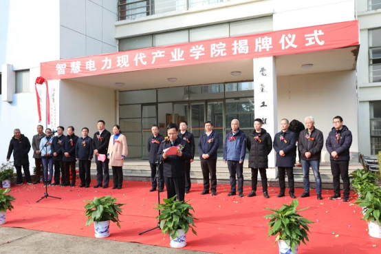 1月11日上午,智慧电力现代产业学院揭牌仪式在电气工程学院举行。校党委书记金志农,校长汪胜前,副校长周敏丹、贺丹君、张兴旺出席仪式,副校长陆伟锋主持仪式,中国华能集团有限公司江西分公司、国网江西省电力有限公司电力科学研究院、国网江西省电力有限公司供电服务中心、中国电建集团江西省水电工程局有限公司、江西华健电力工业有限公司、江西华东电气有限公司等产业学院共建单位领导和嘉宾出席活动。