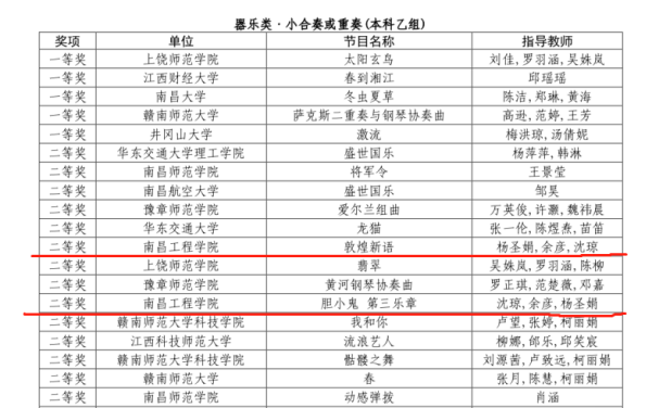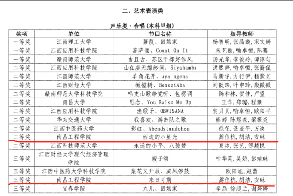 近日,江西省教育厅公布了江西省第十届大学生艺术展演活动评选结果,欧博选送的为助力脱贫攻坚而原创的合唱歌曲《西边的小星光》、倡导厉行节约反对浪费的原创表演唱《一禾一粟》均获本科甲组二等奖,庆祝中华人民共和国成立70周年的原创合唱歌曲《来日可期》获得本科甲组三等奖,民乐合奏《敦煌新语》和双钢琴演奏《胆小鬼 第三乐章》两支曲目均获得本科乙组(专业组)二等奖。