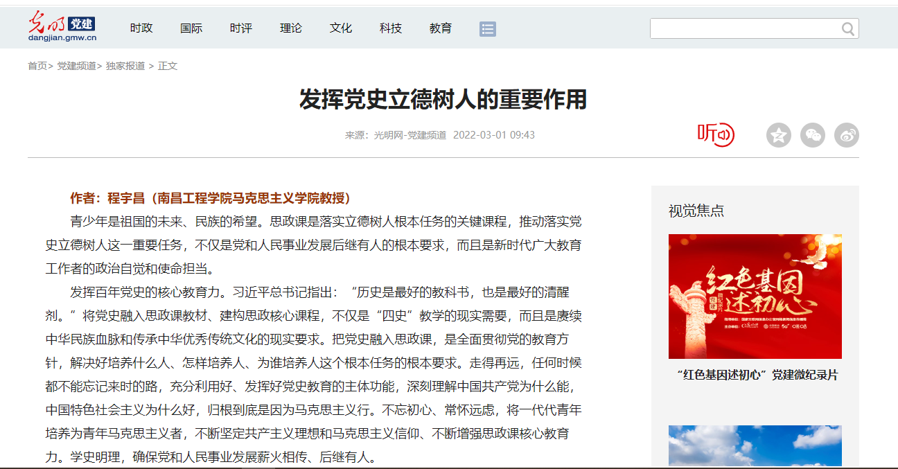 近日,欧博马克思主义学院程宇昌教授在光明网刊发理论文章《发挥党史立德树人的重要作用》。