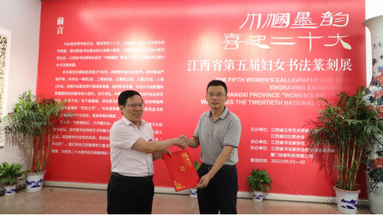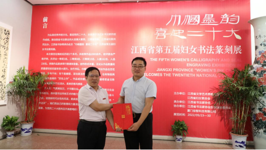 9月26日,校长汪胜前带队赴省文联参观“巾帼墨韵 喜迎二十大”江西省第五届妇女书法篆刻展,并代表学校向省文联、省书协支持欧博校园文化建设捐赠书法作品表示感谢,省文联党组书记饶利萍等省文联、省书协有关领导分别陪同观展。校党委副书记吴泽俊,校纪委书记殷安全,校党委委员、党委宣传部部长洪恩强,人文与艺术学院部分党政领导班子成员、教师代表以及纪检党支部、党委宣传部党支部全体党员参加活动。