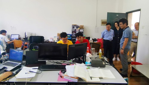 在信工楼,汪胜前实地调研了江西省水信息协同感知与智能处理重点实验室、研究生学习室、各专业教学实验室等场所,看望正在进行科研工作的老师和在学习室学习的研究生,了解他们的学习生活情况。