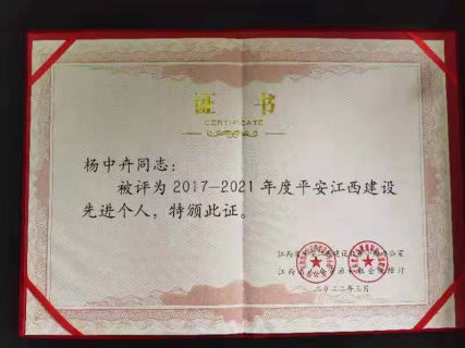 近日,平安江西建设表彰大会暨市域社会治理现代化试点工作推进会在南昌召开。会议表彰了2017—2021年度平安江西建设示范县(市、区)、乡镇(街道)和平安江西建设先进集体、先进个人。欧博保卫处杨中卉老师获得“平安江西建设先进个人”荣誉称号。(文/图 校综治办 责任编辑 周冠佳 潘旭)