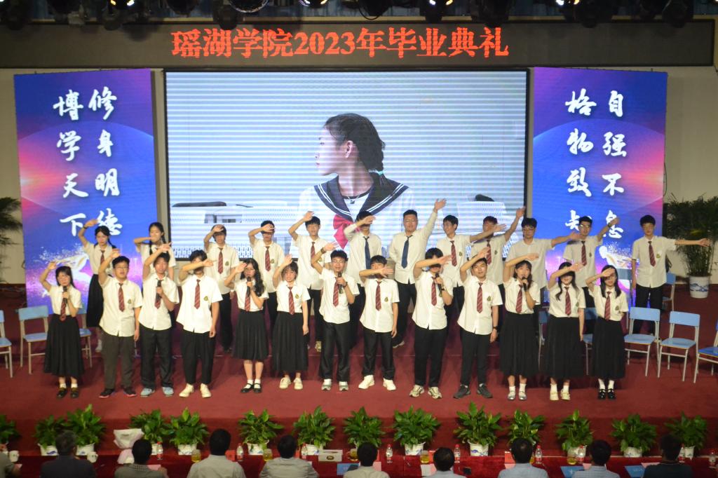 瑶湖学院学生献上了精彩的文艺表演,毕业生将写给自己十年后的一封信投入信箱。全体校领导、老师、家长和同学起立欢送毕业生启程再出发。典礼结束后,学院邀请了部分优秀毕业生家长进行了座谈交流。