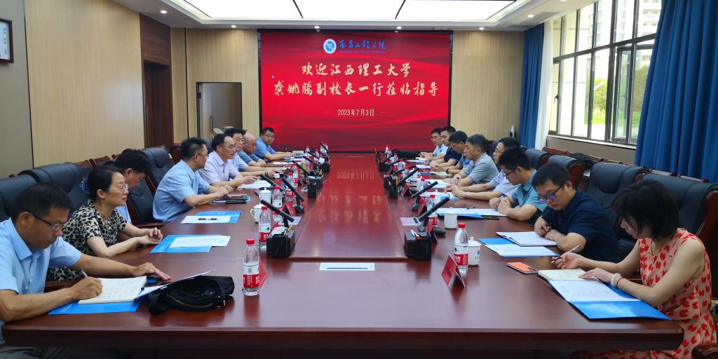 刘祖文对龚姚腾一行表示欢迎,介绍了学校的办学历程、办学特色及新一轮本科教育教学审核评估的总体情况。龚姚腾介绍了江西理工大学的基本情况和来校调研目的。