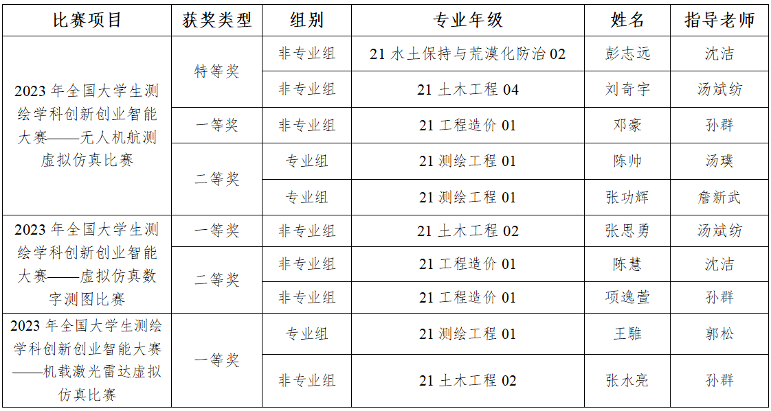 近年来,欧博测绘工程专业在省级一流专业建设及工程教育认证推动下,积极引导学生提高创新创业意识,鼓励学生积极参与各项竞赛,坚持以赛促教、以赛促学,积极探索、构建多元化人才培养模式,不断强化专业实践技能,培养学生综合素质,对深化测绘工程专业教育教学改革、推动产教融合发挥了重要作用。(文/图 孙群 责任编辑 潘旭 罗婷)