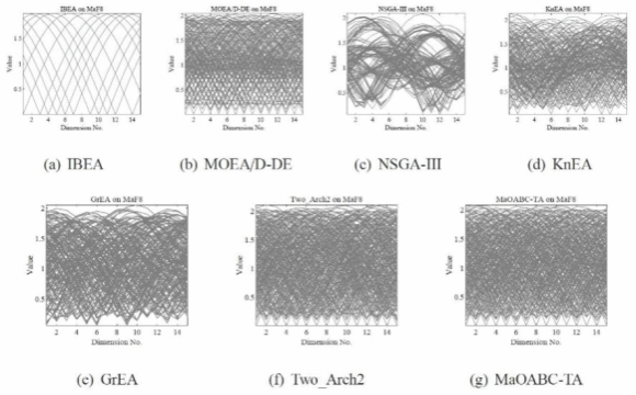 针对高维多目标优化问题的求解,提出了一种基于双档案策略的高维多目标人工蜂群算法。该成果主要贡献包括三个方面:一是受双档案方法的启发,使用了一个收敛性档案和一个多样性档案,存储具有不同潜力的个体;二是基于收敛性档案和多样性档案,设计了三种具有不同行为的搜索策略,以增强不同搜索阶段的收敛性或多样性;三是在跟随蜂阶段,基于Lp范数距离设计了一种新的概率选择方式,用以选择具有良好的多样性的解。仿真实验测试了88个基准问题实例,并将提出的方法与其它13种知名算法进行了对比。实验结果表明,研究团队提出的方法在处理高维多目标优化问题时具有良好的收敛性和分布性。